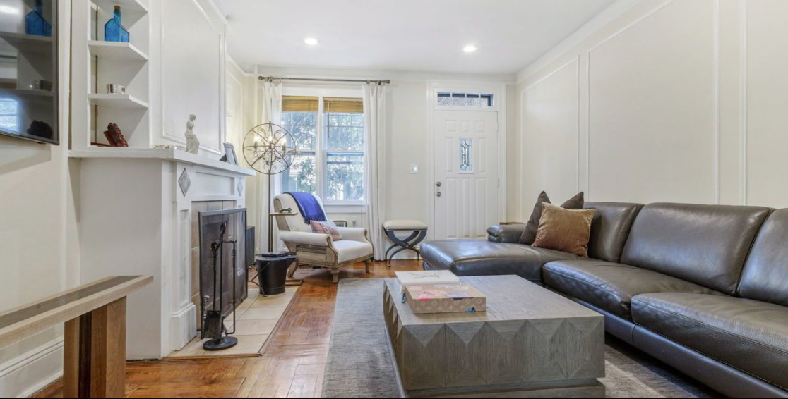 Top floor houses two queen-sized bedrooms with deep closets and bathroom.